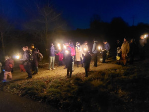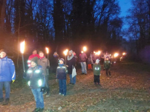 Am vergangenen Samstag, 22.11., trafen sich ca. 25 Kinder und Jugendliche und 20 Erwachsene um 16:30 Uhr am Festplatz in Niederstetten. Über den Schlossberg und die Schlosstreppen erreichten wir das Schloss Haltenberg Stetten. Da die Dämmerung bereits hereinbrach, wurden zahlreiche Fackeln entzündet, damit wir auch weiterhin unseren Weg gut sehen konnten. Durch den Schlosswald erreichten wir die Höhe, wo uns unser Weg Richtung Judenfriedhof führte. Vorbei am Aussichtpavillon folgten wir dem Weg zurück ins Tal, wo wir auf den Radweg zwischen Niederstetten und Oberstetten kamen. Diesen folgten wir zurück nach Niederstetten. Am Ortsrand wartete bereits ein warmes Lagerfeuer und Getränke auf dem Minigolfplatz auf uns.